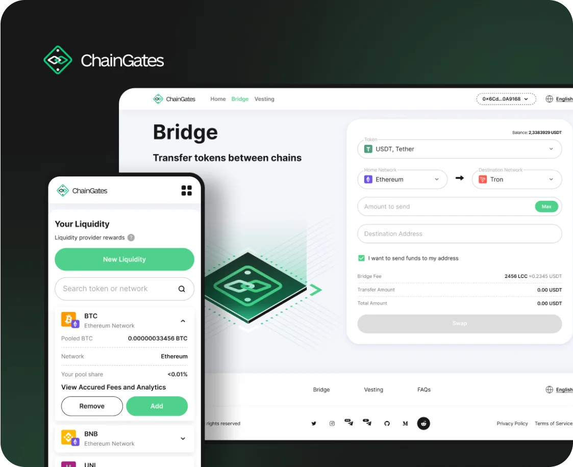 Key products include non-custodial and custodial wallets, vesting and staking portals, a non-custodial bridge, tokenization services, NFT marketplace, decentralized exchanges (DEXs), and a seamless blockchain bridge.