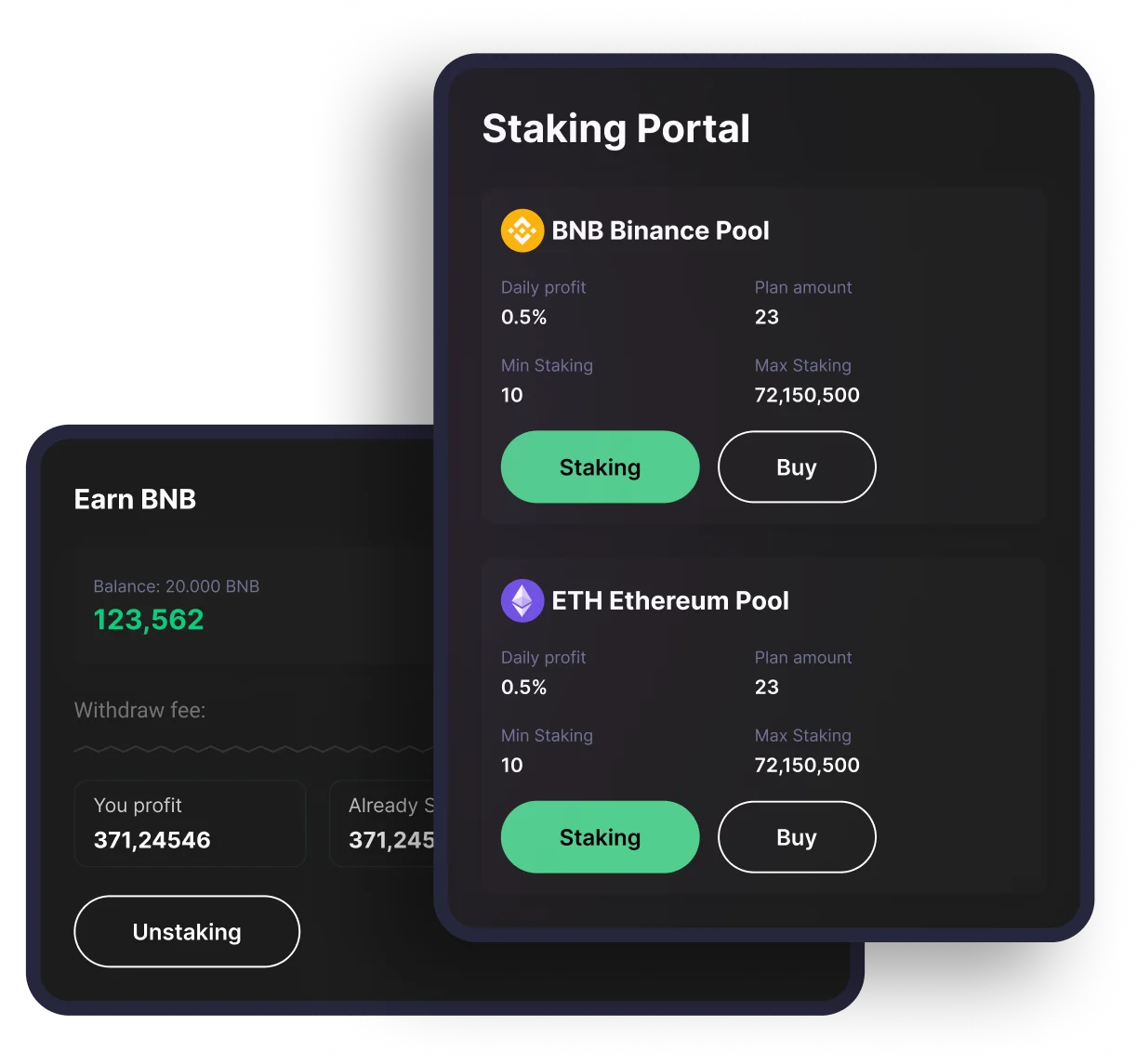 Our platform offers a range of tools and features to help you easily manage your staking pools. Monitor performance, adjust pool parameters, and more with real-time analytics and easy-to-use tools.